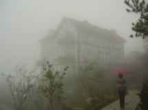 そこから約30分,車は周囲の山とほぼ同じ高さの標高3000m地点に到達する。 ここからは険しい山を見上げると言うより,周囲に広がる広大な谷間を見下ろす景色になった。 この当たりから花蓮側にかけてが大魯閣国家公園となる。 しかし標高3000mとなると寒くて,寒くて・・・,それに風も強い,ちょっと走ると息切れを感じる。 最初着いた時は霧,というより雲の中だったが,雲の移動に伴い時々視界が開ける。 こんな具合だったが,やっぱり標高3000mからの眺めは雄大だ。 この当たりは台湾の主要道路では唯一,冬季積雪を経験する。 そして目の前に横たえる合歓山は 台湾唯一のスキー場になる。 といっても日本の様な設備もリフトも見えないから,多分,単に斜面を滑ることができるという感じだろう。 大魯閣国家公園は この当り 一帯の広大な山岳地帯が指定されている。 ここから花蓮に下る川の下流にある≪大魯閣渓谷≫も大魯閣国家公園の中に含まれる。 |