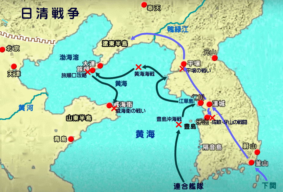 ![]() ◆ 日露戦争の経過 「バルチック艦隊」と「極東艦隊」が合流すれば、日本軍の勝ち目がない。 それにはバルチック艦隊到着までに、「旅順艦隊を殲滅」しなければ「挟み撃ち」にされる。 |